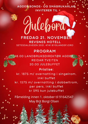 Agder Bonde- og Småbrukarlag inviterer til julebord