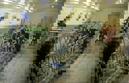 Under et besøk av fylkesstyret ble det skålet i edlere dråper enn melk, da lausdriftsfjøset var tatt i bruk. Med Ann-Christine Theodorsen og Terje Nystabakk.