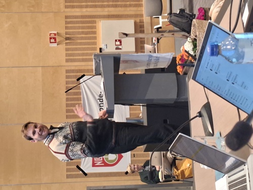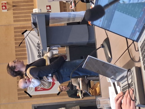 Une Bastholm fra Miljøpartiet de Grønne får representere alle gjestene som hilste landsmøtet.